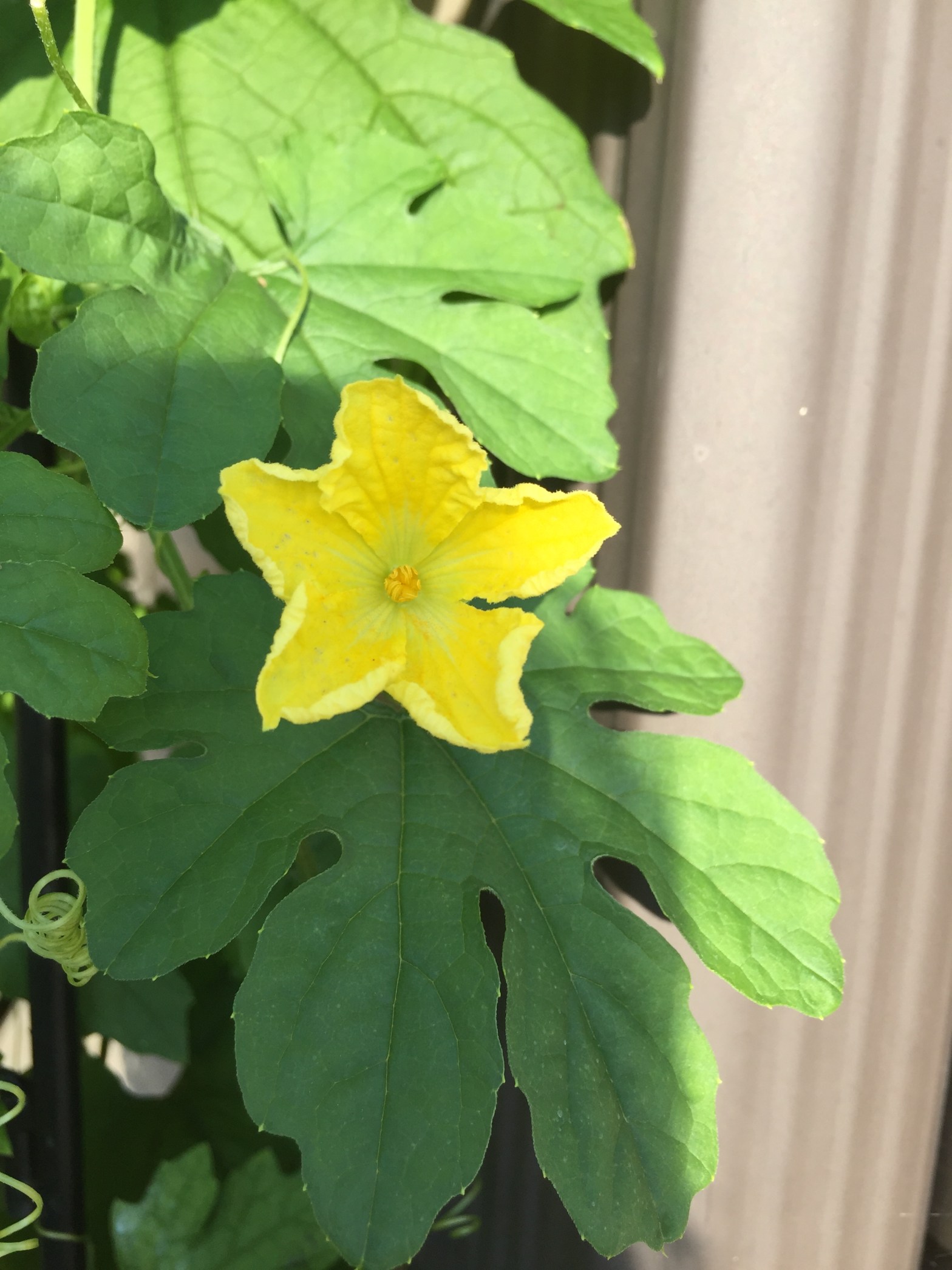 Bittermelon! It is decorative for its beautiful foliage; edible, medicinal and nutritious.