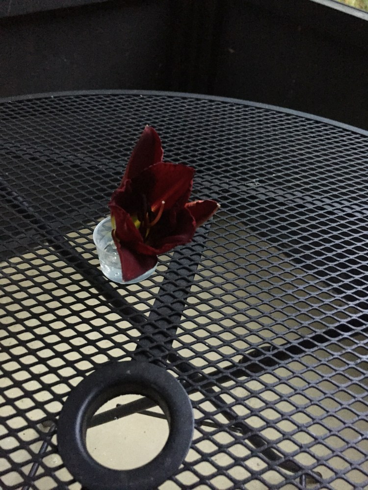 I accidentally severed my Daylily’s flower head that is about to open yesterday. Instead of throwing it away I placed it in a medicine measuring cup filled with water.